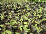 トマトの苗も早いものは、花の芽も出ています。この花が咲いたら植時です。後から種をまいたトマトは、まだまだ本葉三枚くらいです。